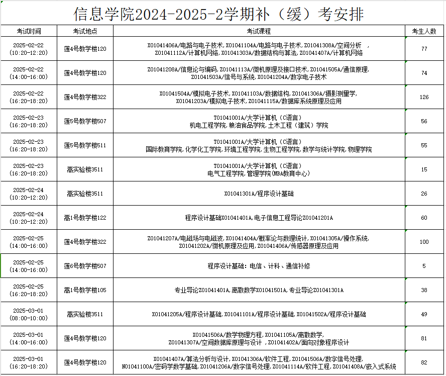 根据本学期教务处补(缓)考总体安排,笔趣阁 开设课程的补(缓)考安排已上传学校教务系统,请各位考生及时进入教务系统查看具体考试安排。请考生务必携带身份证和学生证(或一卡通)参加考试。