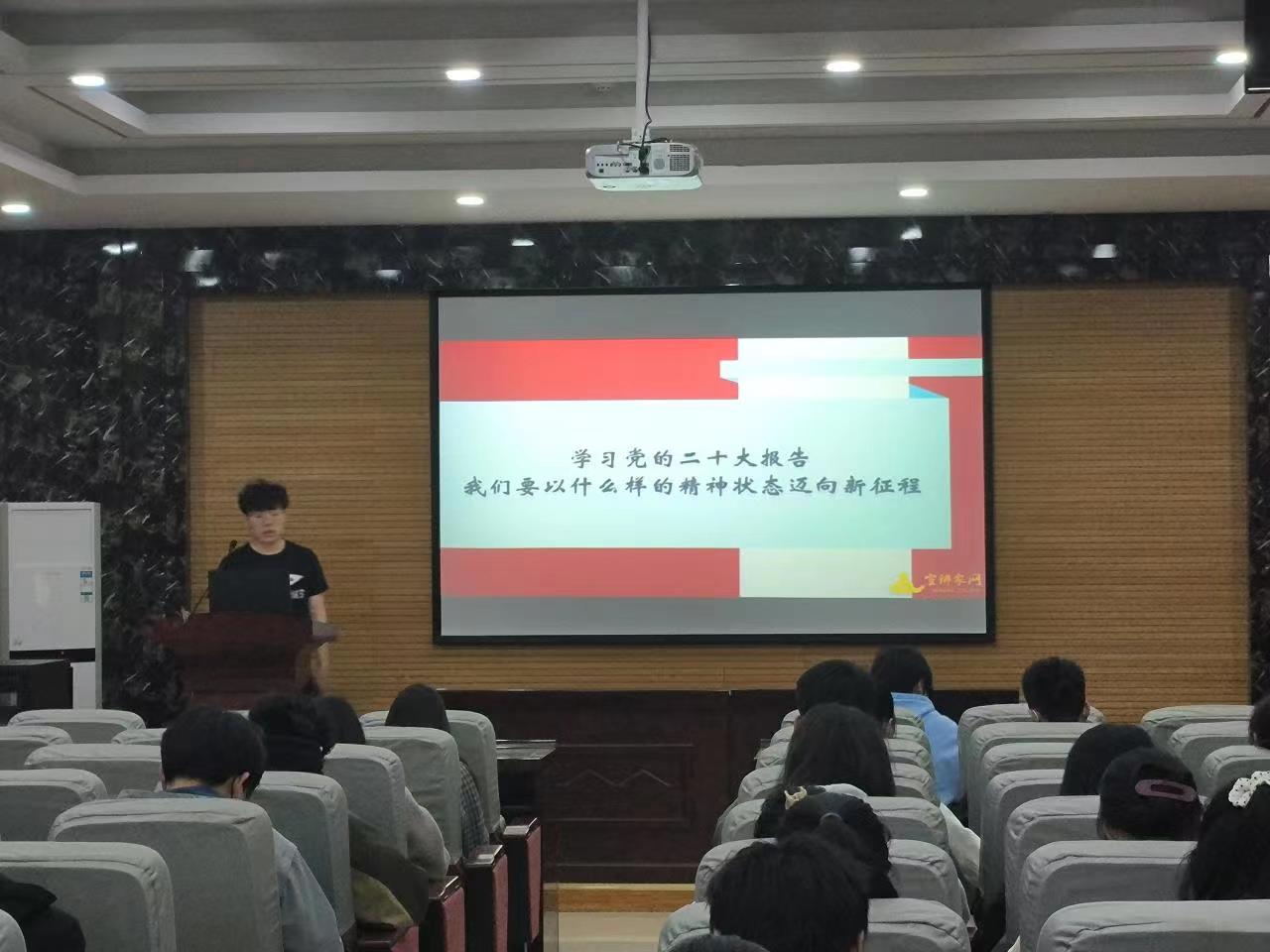 在6228召开了以学习贯彻党的二十大精神为主题的“青马工程”培训会。学院团委学生会成员、各团支部书记参加会议,会议由学院团委副书记陈若愚同学主持。