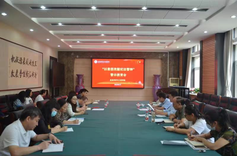 在6225召开“以案促改敲纪法警钟”警示教育会,学院领导班子、全体中层干部参会。会议由学院党委书记郭晓旻主持。