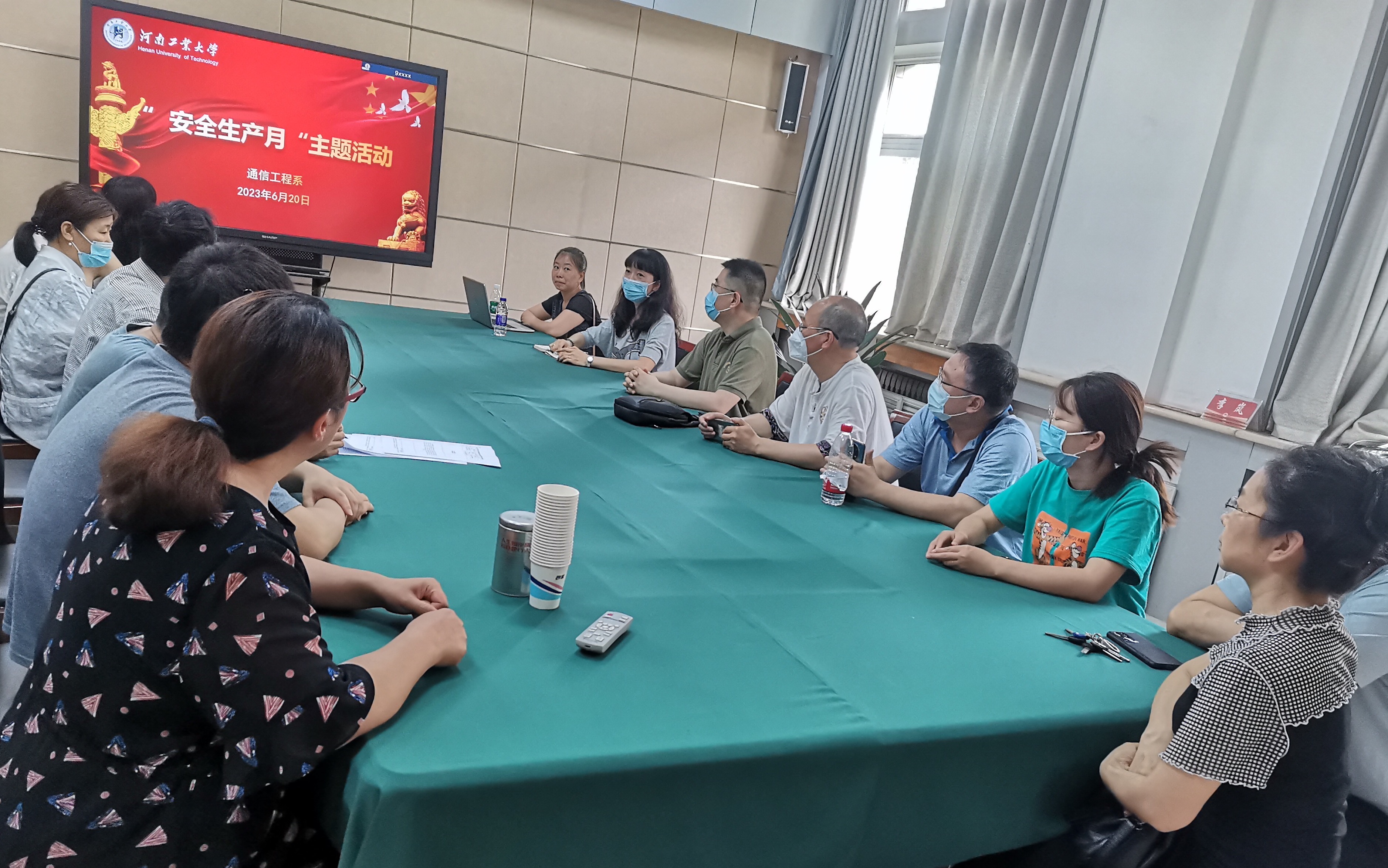 为深入学习贯彻习近平总书记关于安全生产重要论述,深入宣传贯彻党的二十大精神,6月20日下午,通信工程系在6412会议室开展“安全生产月”主题活动。通信工程系全体教师参加了本次主题活动,会议由系主任马海华主持。