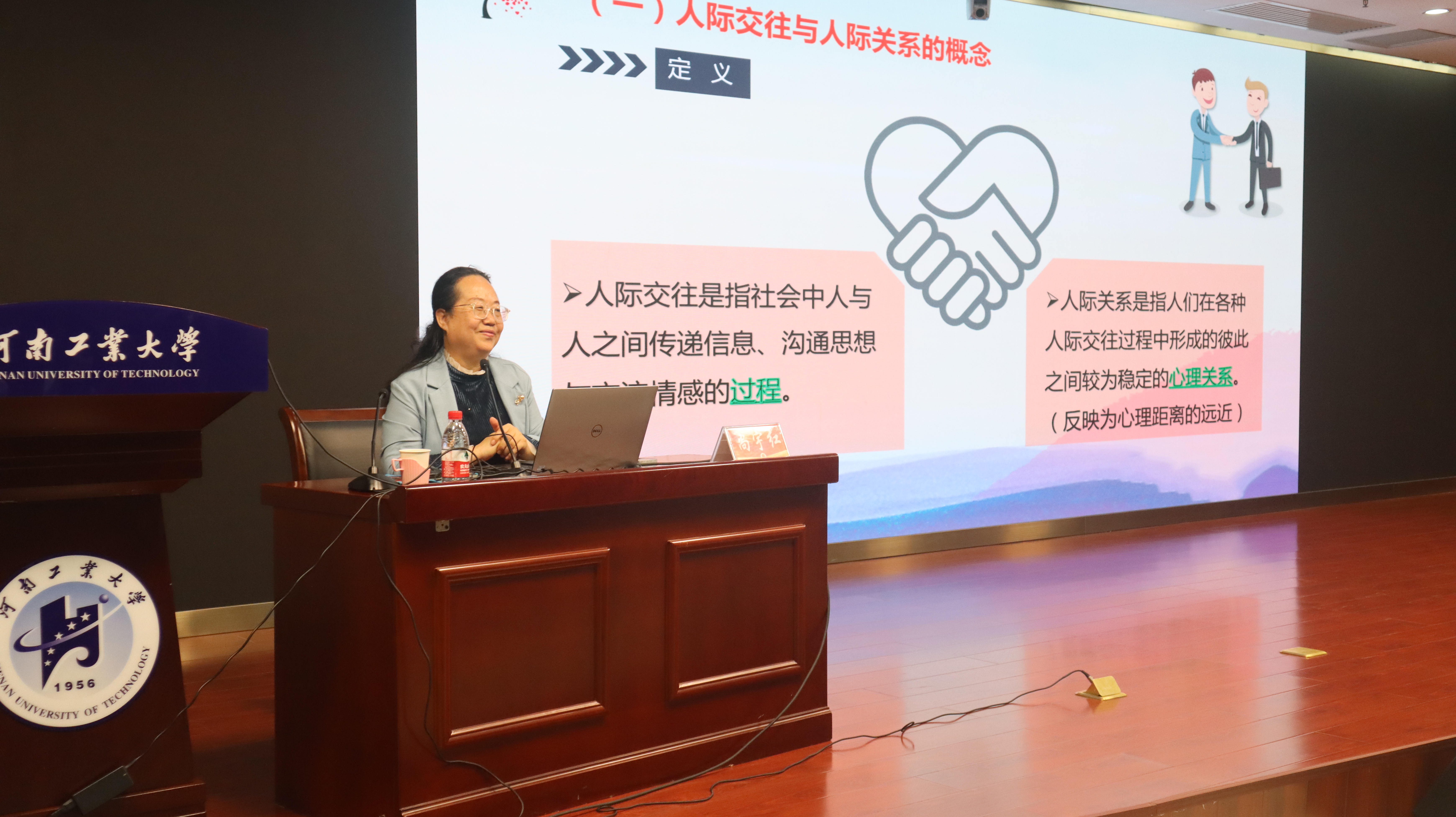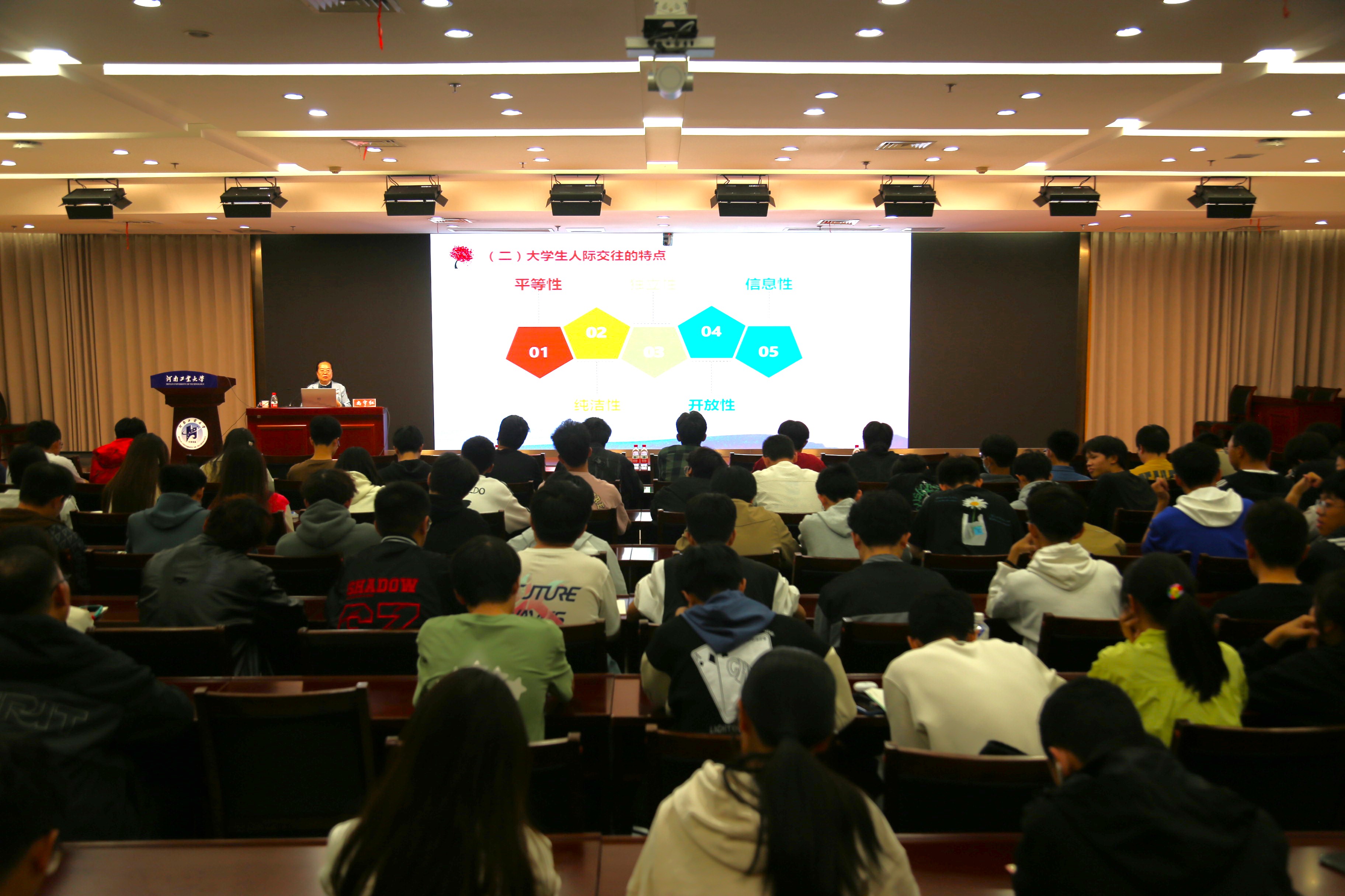 在D205会议室举办以“大学生人际交往”为主题的心理健康讲座。此次讲座旨在进一步加强大学生心理健康教育,提高学生人际交往能力,营造温馨和谐的人际交往氛围,切实提高学生解决心理问题的能力和水平。学院特邀心理健康中心办公室主任尚宇红作为主讲,全体辅导员、各年级班长和心理委员以及学生会干部参加了讲座,讲座由正处级组织员鲍庆丹主持。