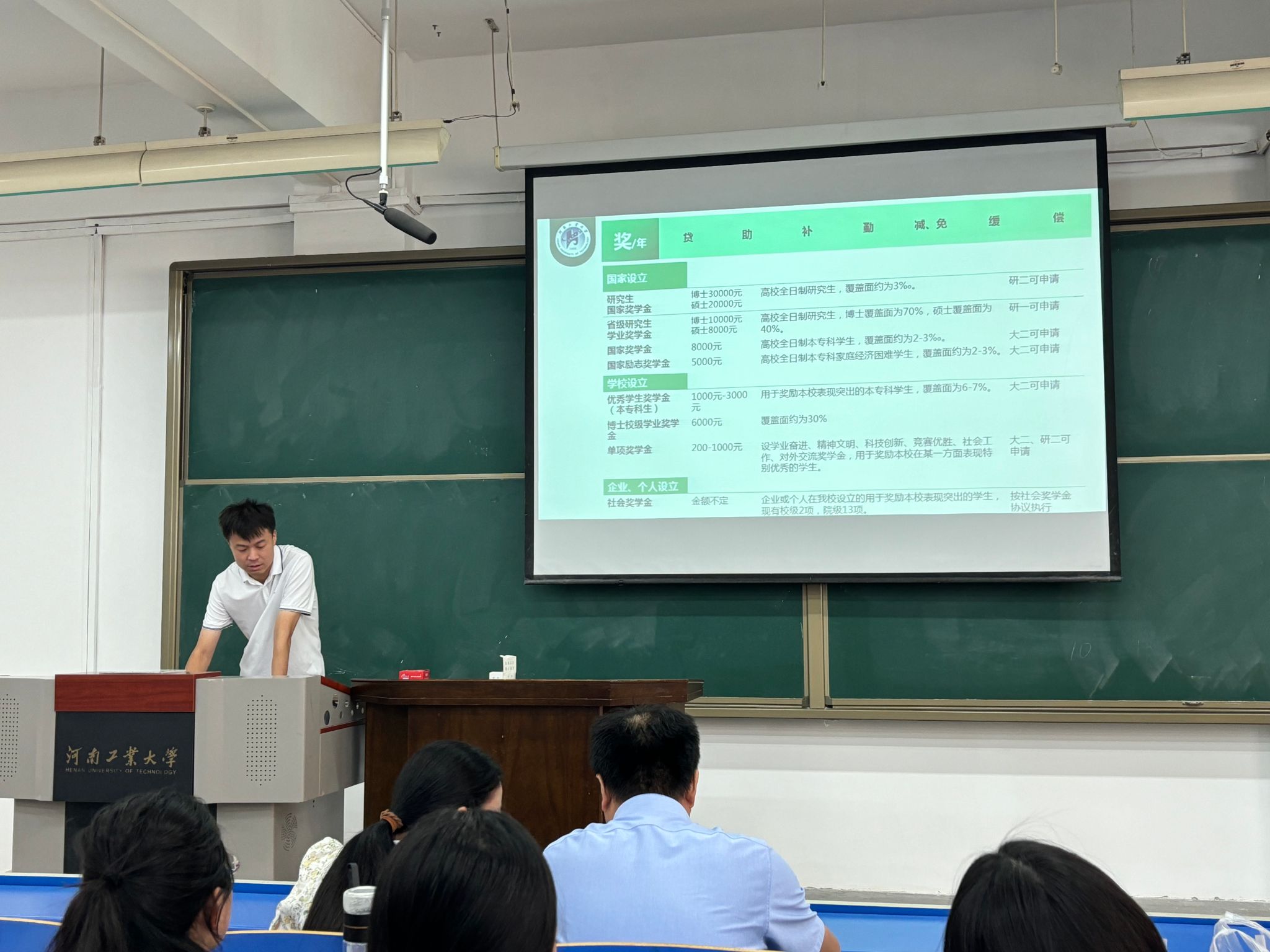 在4220举办了研究生新生入学教育资助政策宣讲会,为了让每一位新生了解国家和学校的资助政策,学院资助工作负责人郑猛虎老师对全体研究生新生进行了相关资助政策的讲解。