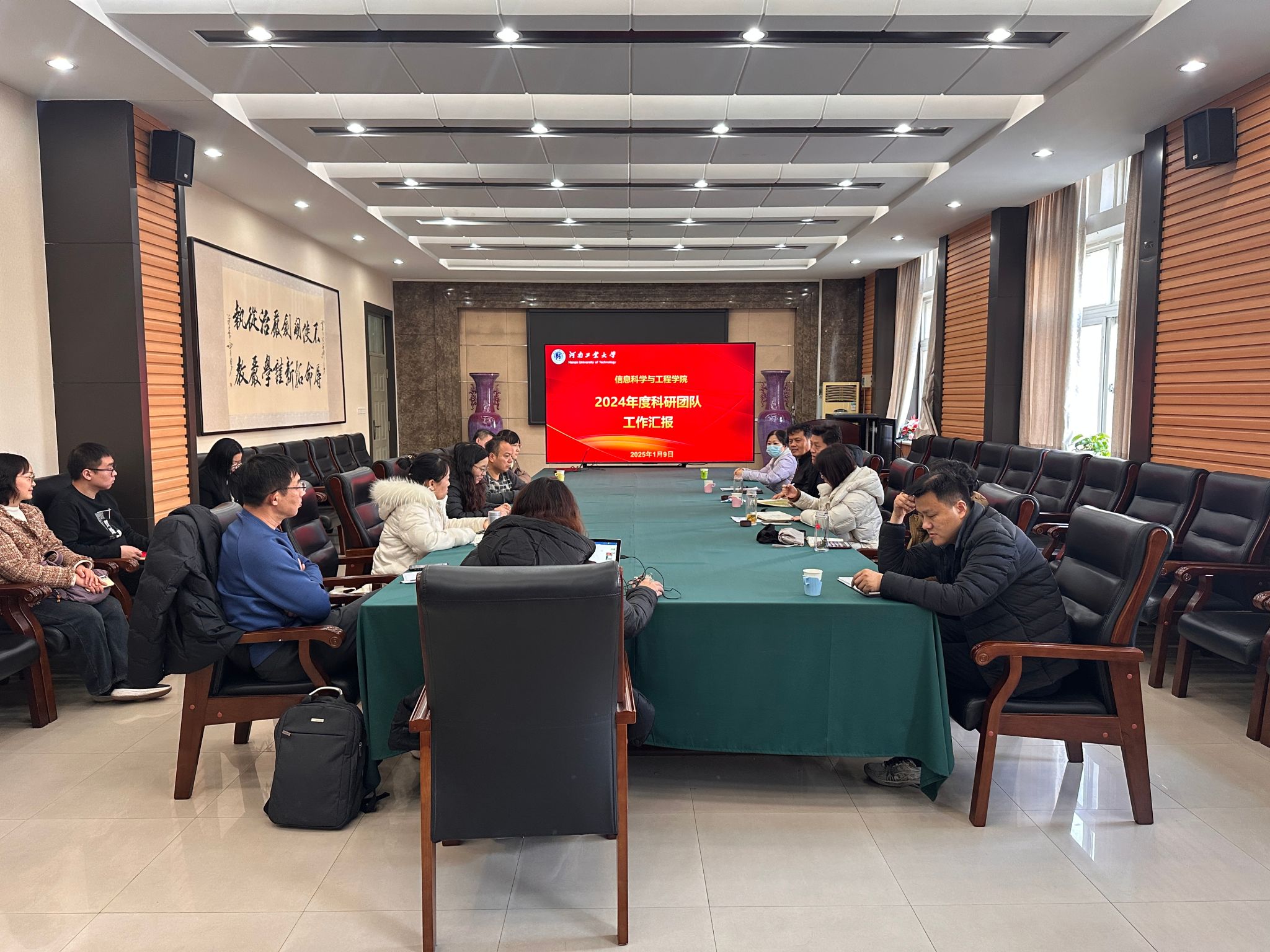 在6225会议室召开科研团队2024年度工作总结汇报会。学院领导班子、各团队负责人及部分教师代表参加会议。院长张庆辉主持会议。