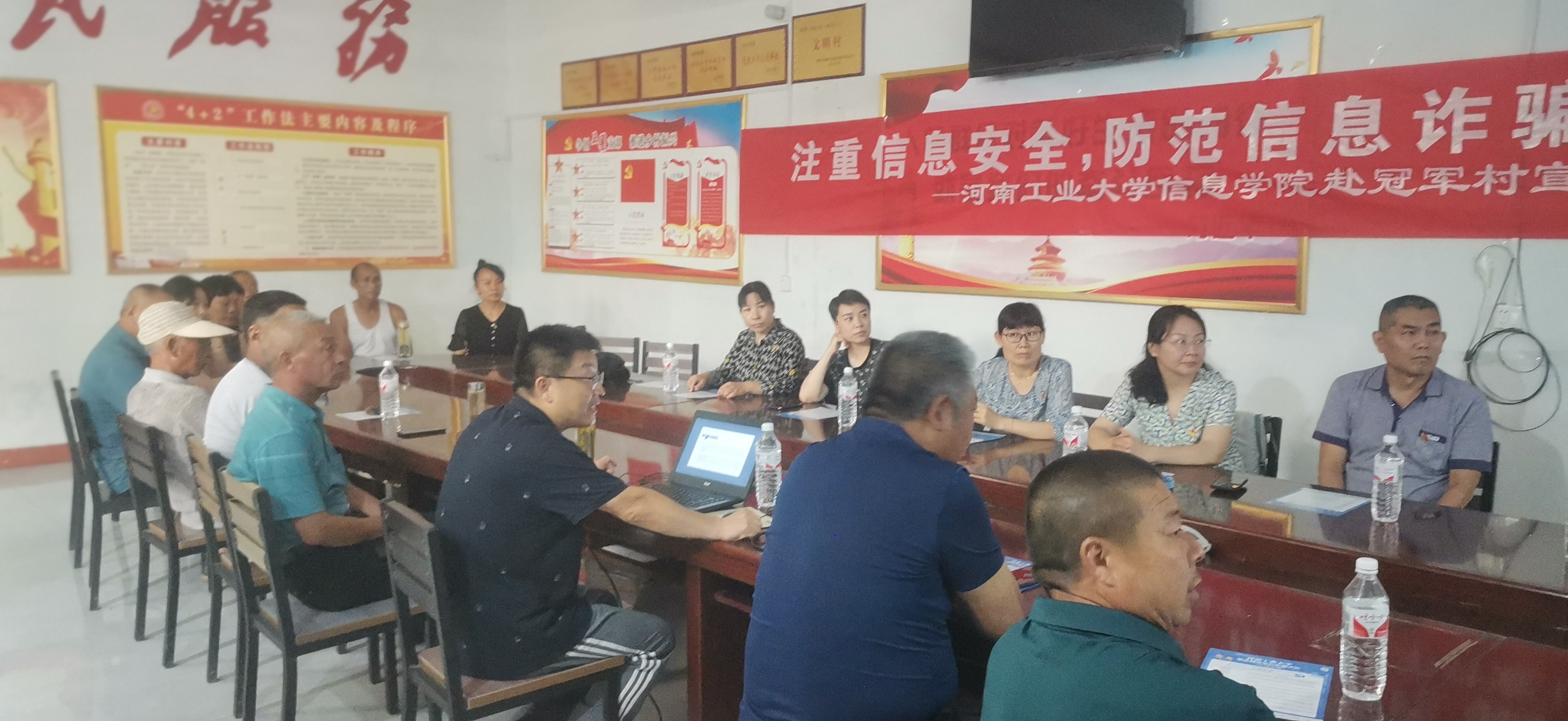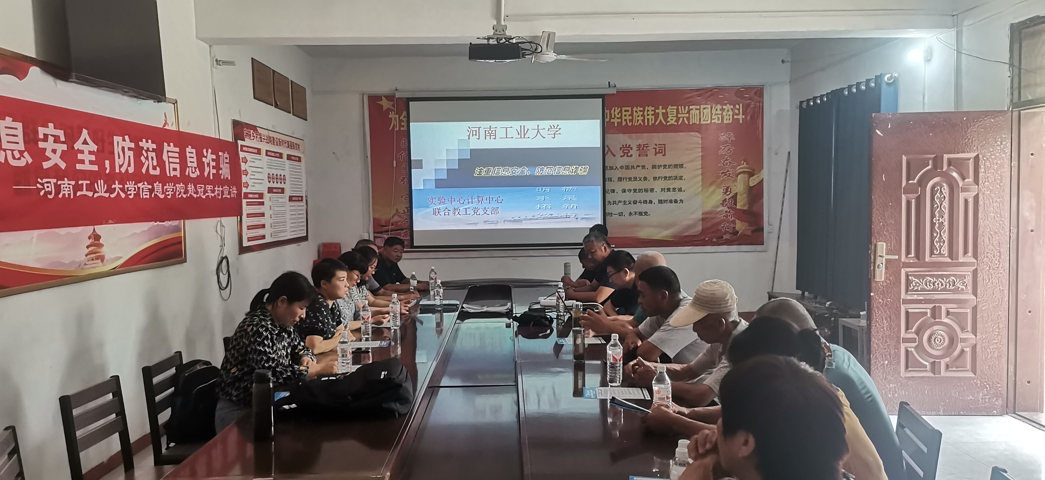 党委根据学校主题教育要求,结合邓州市冠军村定点帮扶工作需要,利用暑假组织实验中心计算中心联合教工党支部开展“重实践、建新功”主题党日活动,深入驻地群众进行“注重信息安全,防范信息诈骗”主题宣讲。