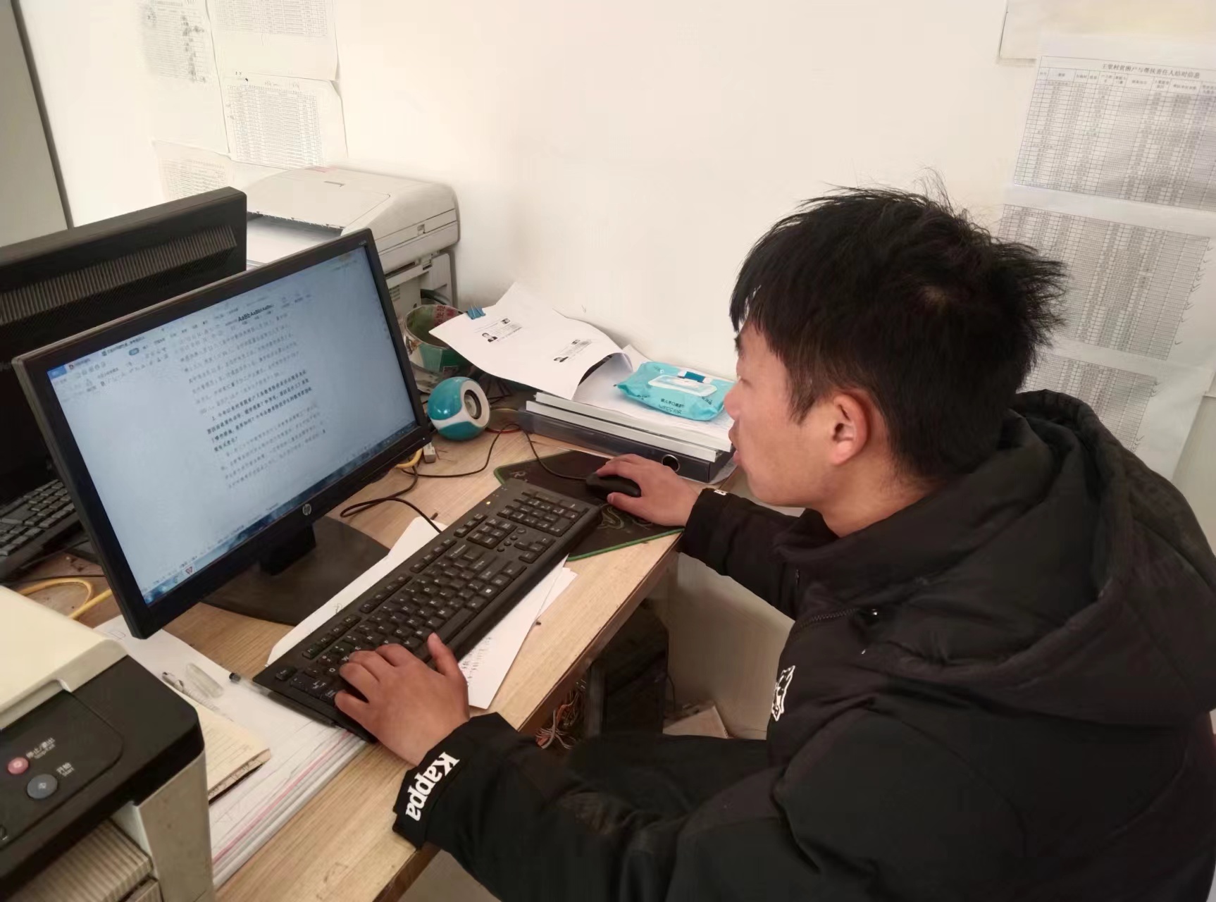 队员刘在村委会协助进行文书工作