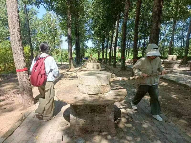 队员们在休闲文化区看到并体验手摇井、推石磨及农村土灶等各种农具,不同时空,做着相同的事情,队员们有种仿佛处于焦裕禄在兰考艰苦奋斗的时期的感受,此区令队员们更深刻地感触焦裕禄在兰考无私奉献、艰苦奋斗的事迹,更深入地学习焦裕禄精神,传承红色基因。