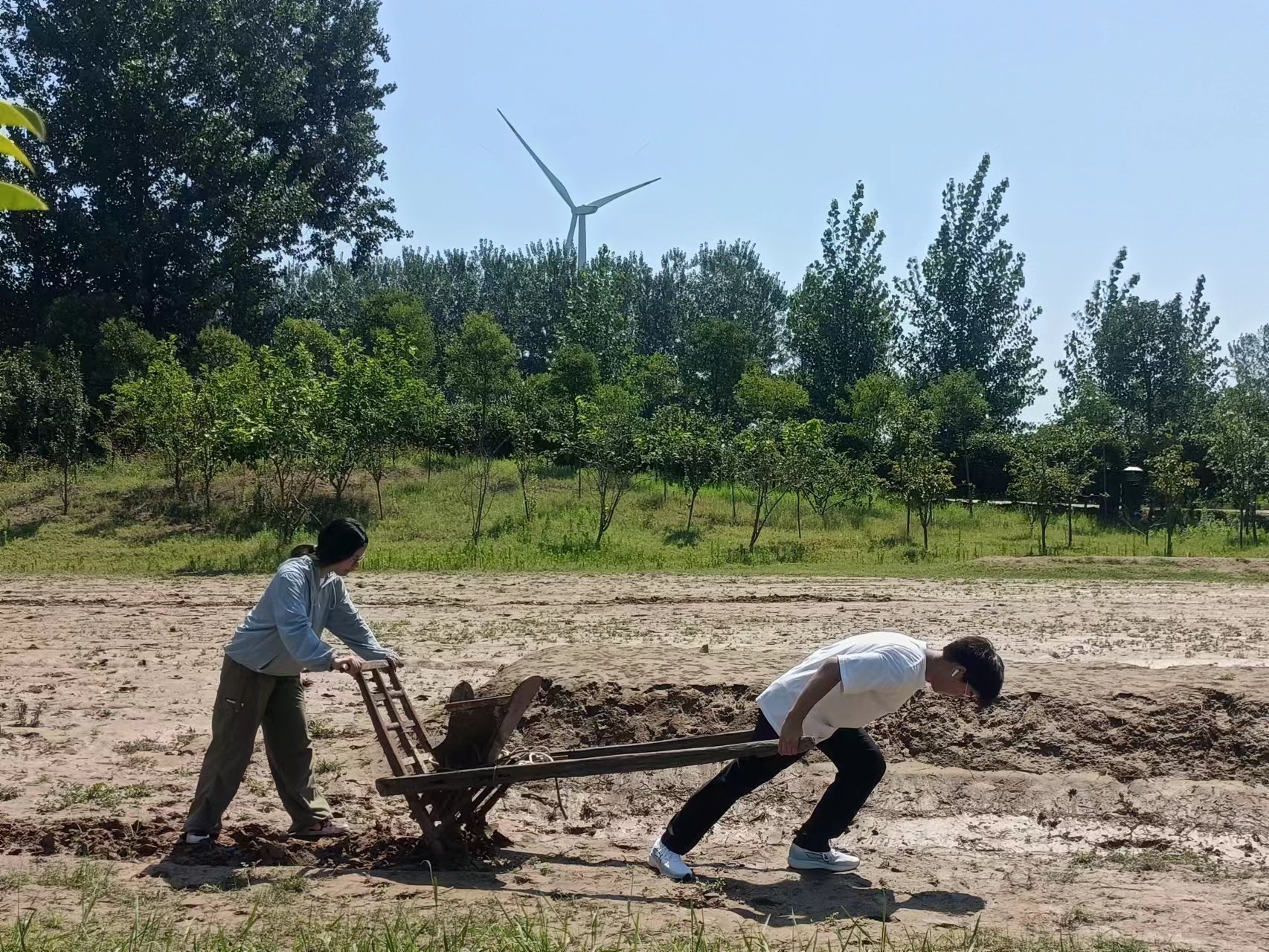 在张庄治沙体验区,队员们进行翻淤压沙子课程的体验,此课程背景是焦裕禄在张庄一眼望不到边的黄沙里看到一小片绿地,受到启示,在这进行大面积的翻淤压沙的实验。通过张庄治沙体验,让队员们学习焦裕禄书记从群众中来,到群众中去,心中装着人民群众,唯独没有他自己的公仆情怀。