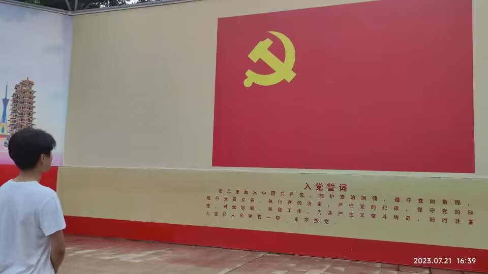 郑州是全国建党较早的地区之一。百年来,红色历史在郑州的演进,留下来了无数珍贵的财富,红色历史是我们学习过去,展望未来最好的教科书。步入党史馆,在入口处首先可以看到中国共产党的红色标志和相关标语,这是一个象征着党的伟大历程的重要展示区域。站在这里,团队成员又重温入团誓词,坚定信仰。我们宣誓:我志愿加入中国共产主义青年团,坚决拥护中国共产党的领导,遵守党的章程,执行党的决议,履行党员义务,严守党的纪律,勤奋学习,积极工作,吃苦在前,享受在后,为共产主义事业而奋斗!