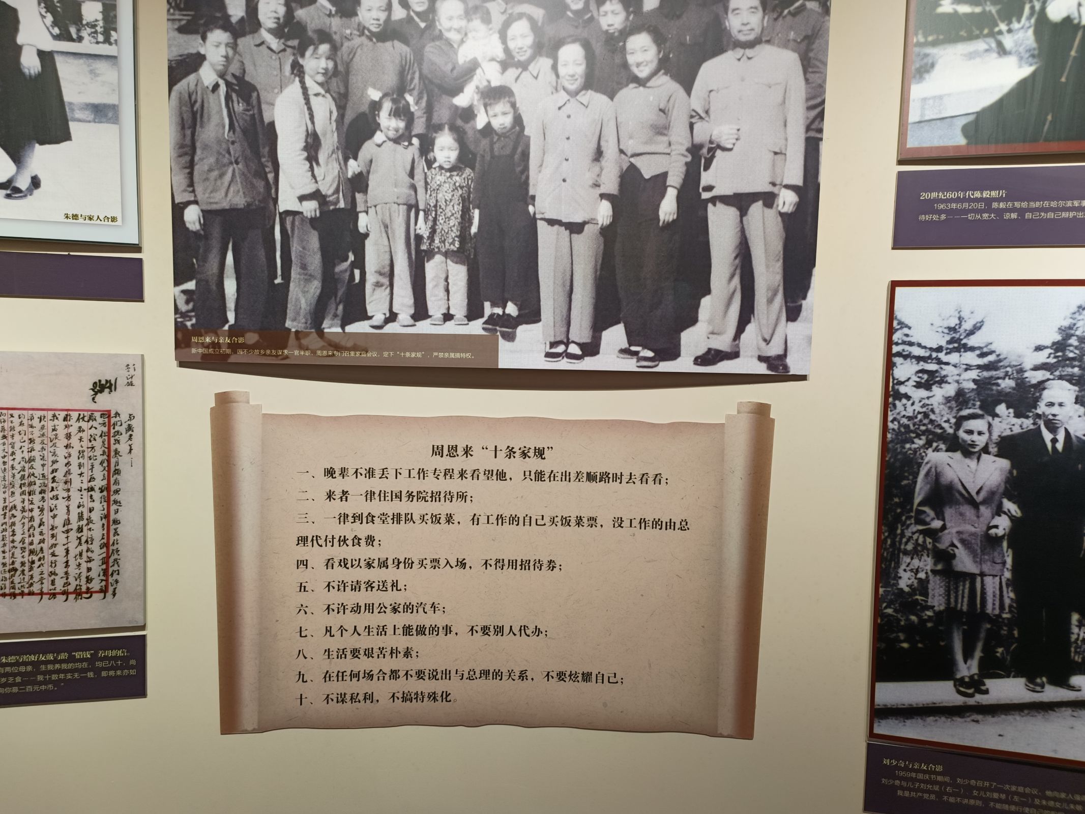 之后,又讲述了人民监督政府等概念,于当时解除一些困境,在第三板块中,赵天文解说员绘声绘色地描述朱德以“我们党专为国家、民族、劳苦民众做事,牺牲个人利益”告诫自己的家人和在新中国成立初期,不少家乡亲友前来谋求一官半职这种现状下,周总理立下十条家规以诫家族,示后人。