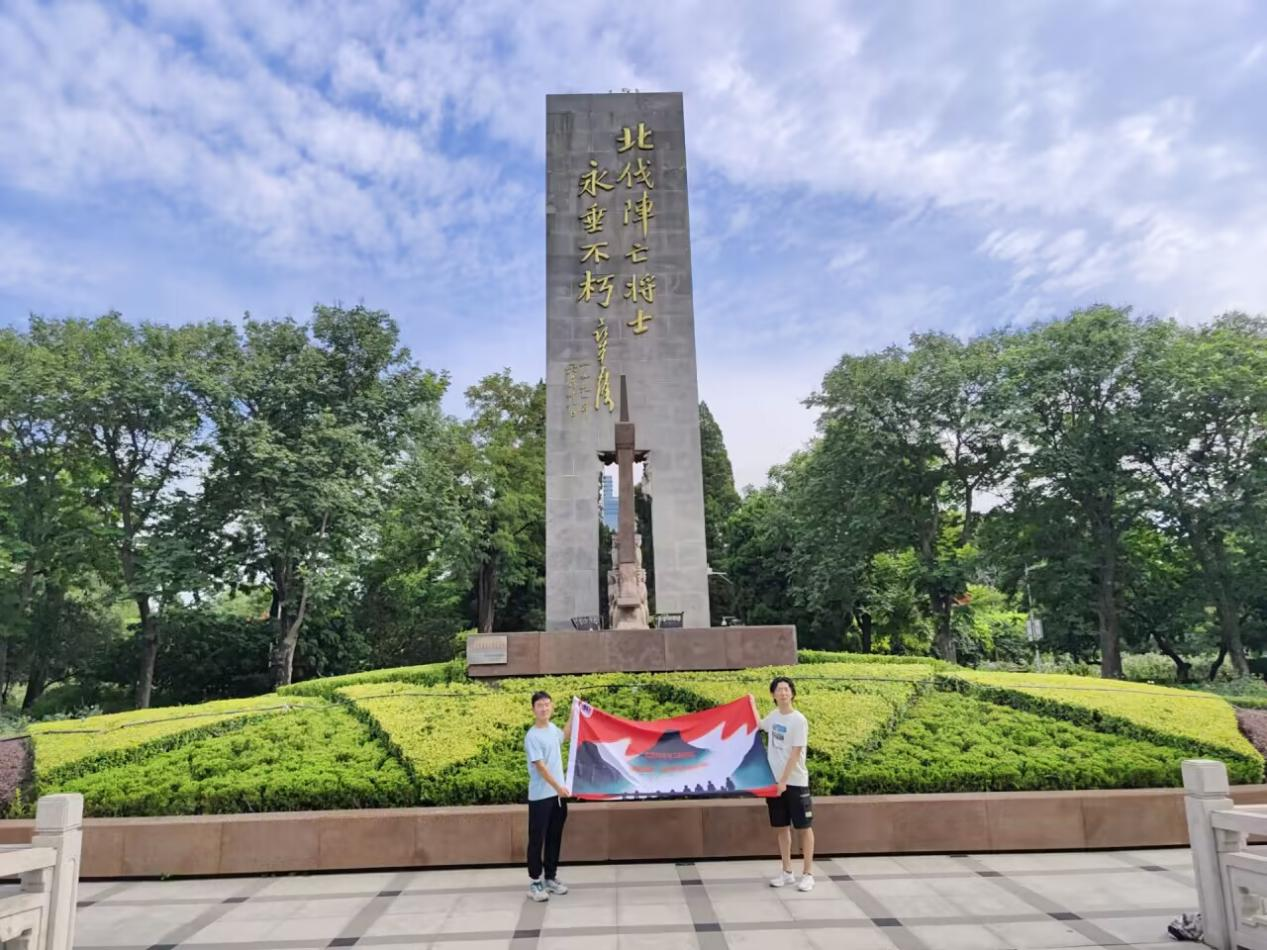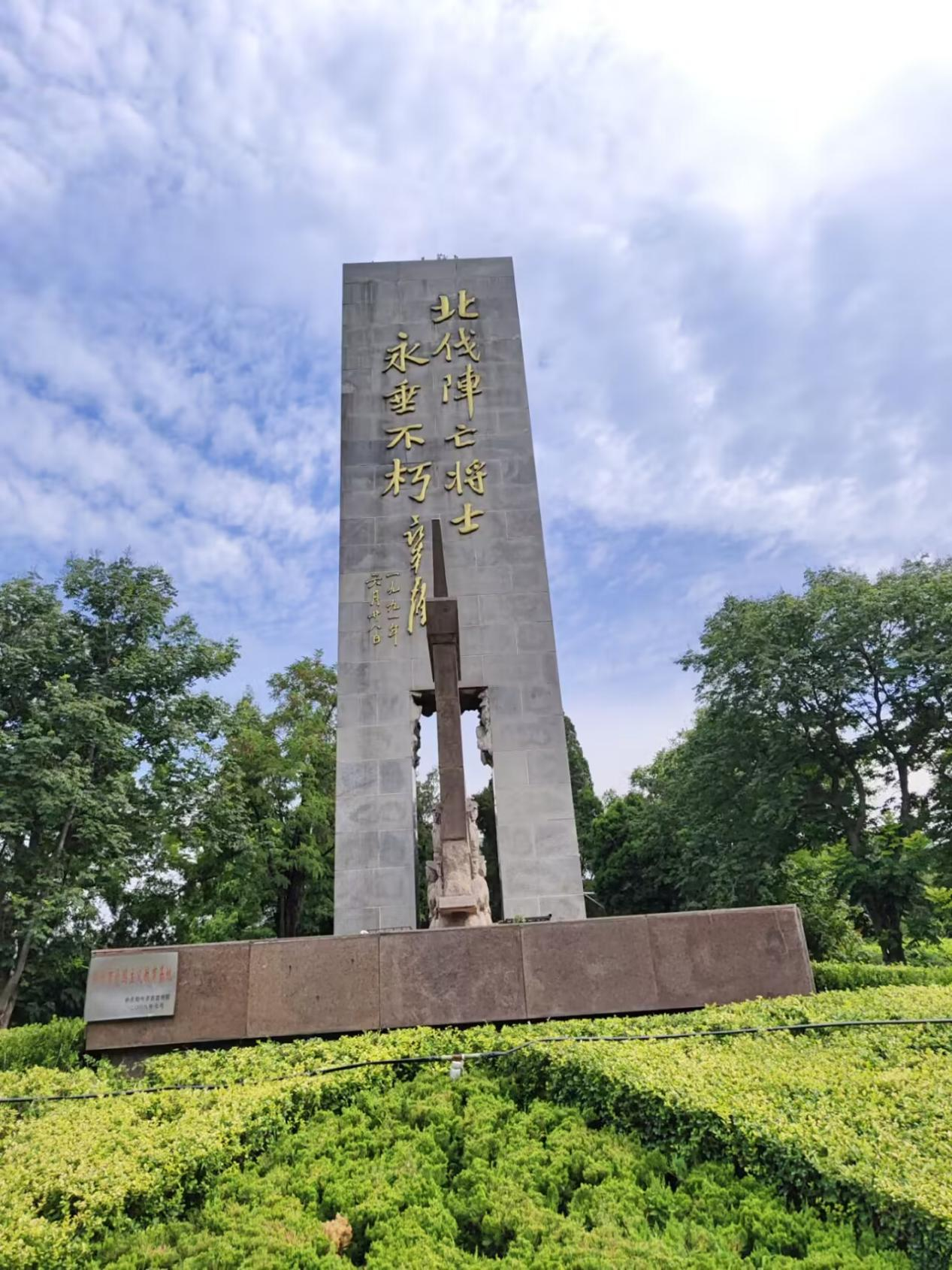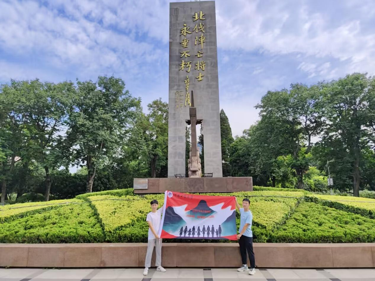 “拼搏成就,筑梦繁星”实践团队成员王怿玮、程科雯、李峥岩,来到了郑州碧沙岗公园北伐战士纪念碑,进行学习北伐精神社会实践活动。