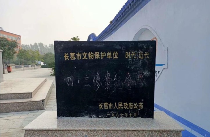 “闪闪红星”实践团队于2023年8月2日下午14时30分走进河南省许昌市长葛市的四二惨案纪念塔。