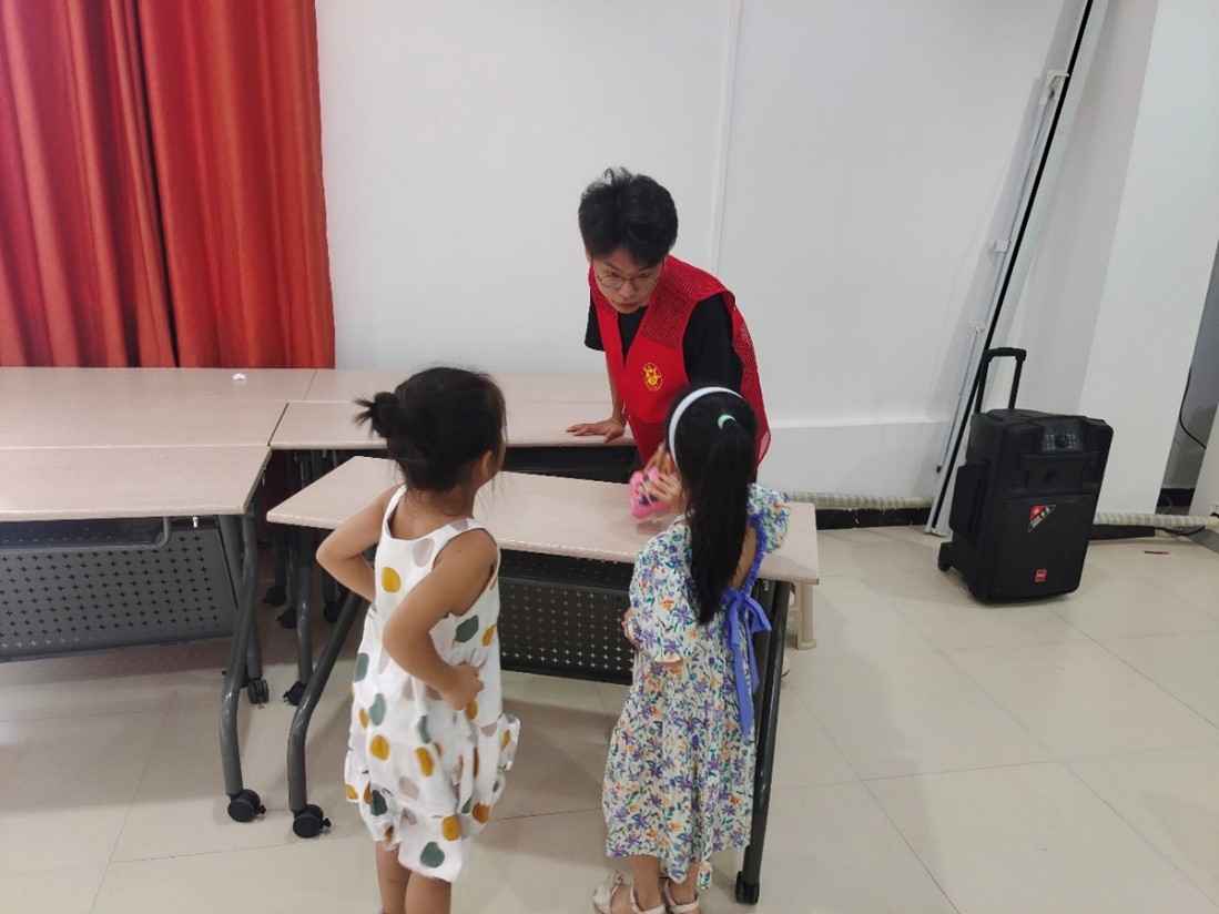 图3 杨沐壕同学给小朋友宣传讲解消防安全知识