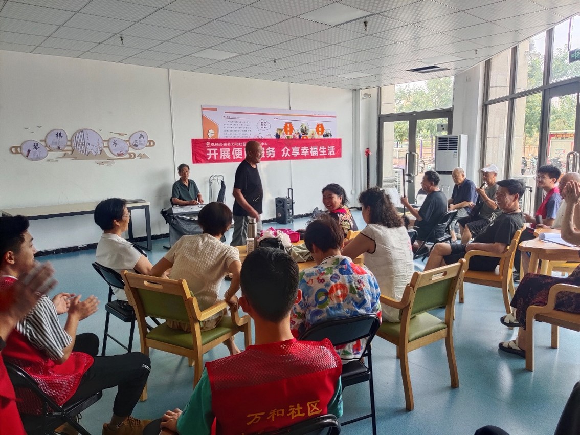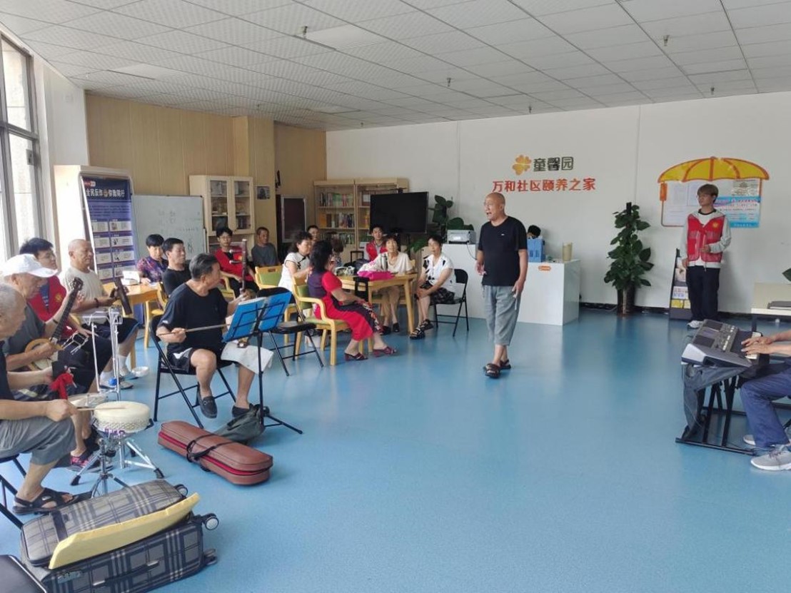 豫剧演奏结束后实践小队邀请社区的老人们一起唱响了《我和我的祖国》《没有共产党就没有新中国》等爱国歌曲,激发了老人们的爱国热情。在活动现场,队员们为老年人演奏了一些经典的歌曲,老年人们也非常积极地参与了演唱和跳舞,现场气氛非常融洽。通过这样的活动,小组成员为老年人提供了一个交流互动的平台,并帮助他们减轻了日常生活中的孤独和无聊。音乐会结束后,实践小队还向老人们发放了关爱卡片,号召他们积极参加社区的各项活动,享受生活。