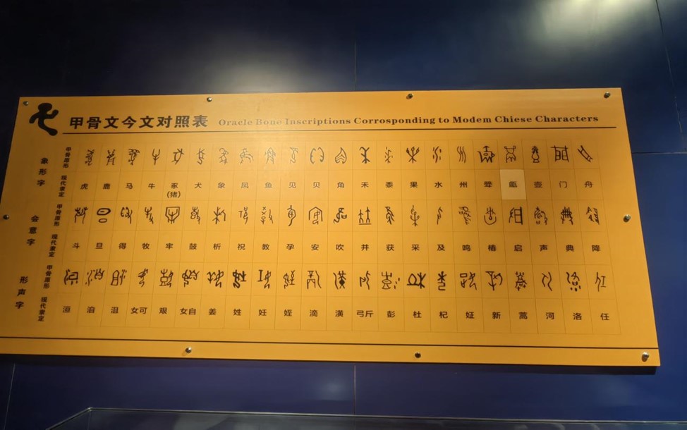 在这之后他们参观了甲骨文场馆,并在场馆人员的带领下学习了解了在商朝甲骨文的作用以及地位。在学习之后,接替场馆人员的工作向游客们介绍这些甲骨文的含义以及用途、地位等方面的知识。