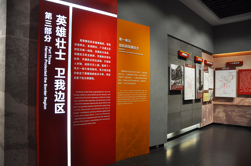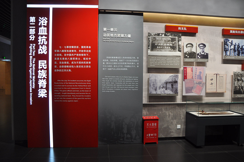 进入第二展厅,从这里的介绍与文物中她了解到这里主要展示了1937年7月——1945年9月,冀鲁豫边区中共党组织与八路军主力部队在抗日民族统一战线旗帜下,广泛发动群众,开展民主民生活动,创建抗日根据地;坚持游击战争,与日伪、顽军进行艰苦卓绝的斗争,经过八年抗战最后取得伟大胜利的光辉历程。