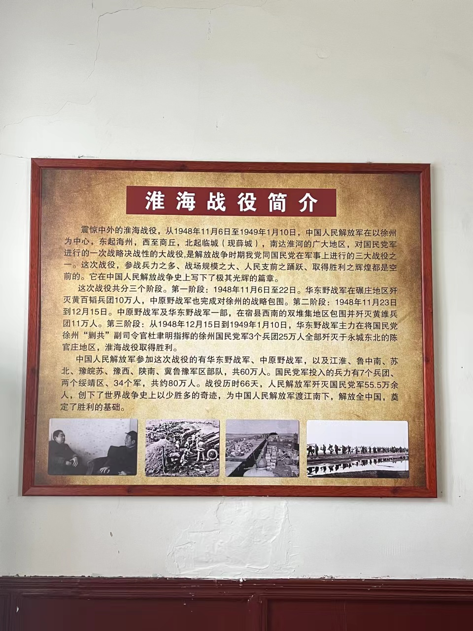 小队成员通过墙上的淮海战役简介了解到,本次战役震惊中外,持续了两个月左右,以徐州为中心,东起海州、西至商丘、北至临城、南达淮河地区对国民党进行战略决战地大规模歼灭,本次战役参战兵力之多,战场规模之大,人民支援前线之踊跃,取得胜利之辉煌都是空前的,在世界战争史上都是以少胜多的典型战例,在中国战争史上留下辉煌的一页,而这场战争的胜利,为中国人民解放军渡江南下,解放全中国,奠定了胜利的基础。