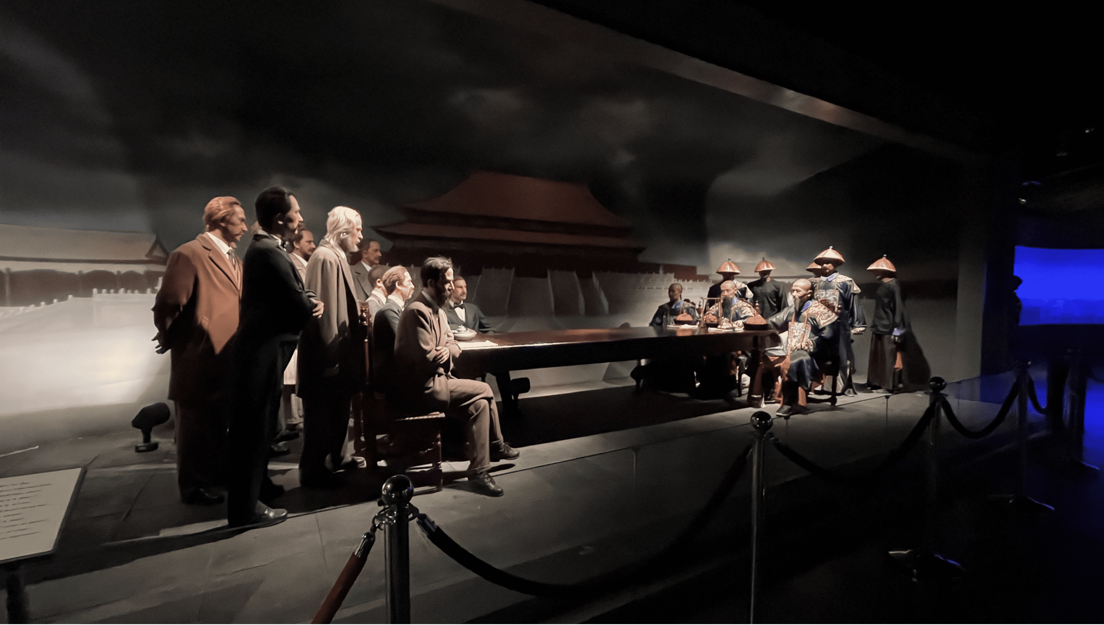 成员们首先来到第一展厅,了解到了更多关于晚清中国的详细情况,19世纪中叶以降,列强加速入侵中国的步伐。列强胁迫清政府签订了一系列不平等条约。