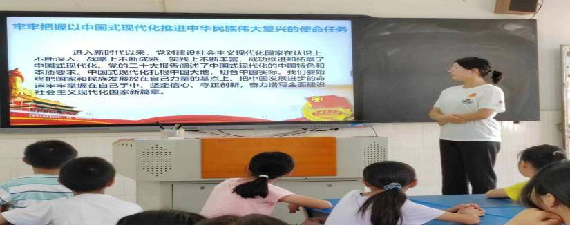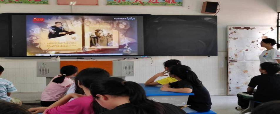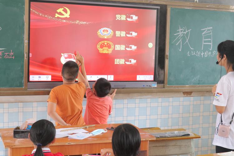 的闪闪红星社会实践队在河源市坪围小学开展以“花式支教,党史下乡”为主题的党史宣传教育。