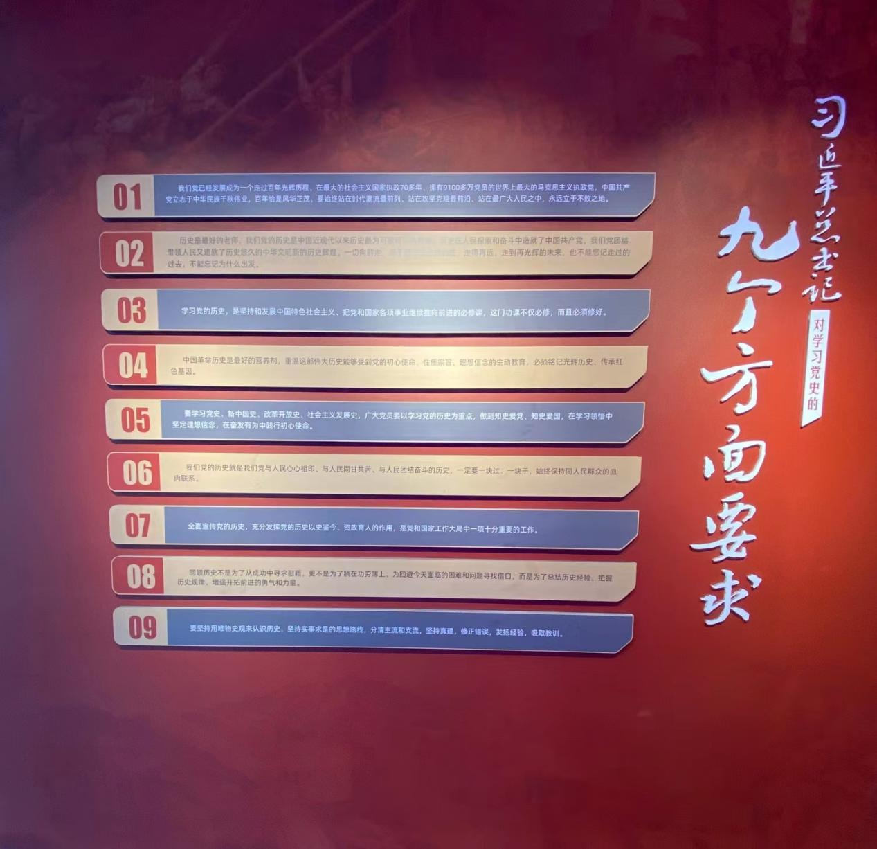 通过这次参观党史馆,也让队员知道了学习党史的重要性。正如习近平总书记对学习党史的九个方面要求中所说的:“学习党的历史,是坚持和发展中国特色社会主义、把党和国家各项事业继续推向前进的必修课,这门功课不仅必修,而且必须修好。”“以史为镜,可以知兴替”,只有学好了党史,才能为未来成为共产党员做好铺垫,才能为未来中国共产党的发展做好理论基础。所以,应当铭记历史,发扬党的革命传统,不忘初心、牢记使命、艰苦奋斗、勇于创新,为党的事业作出更大的贡献。