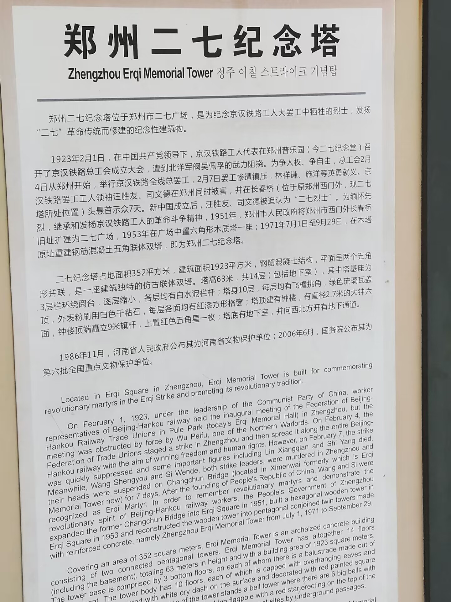 图一 二七纪念塔介绍