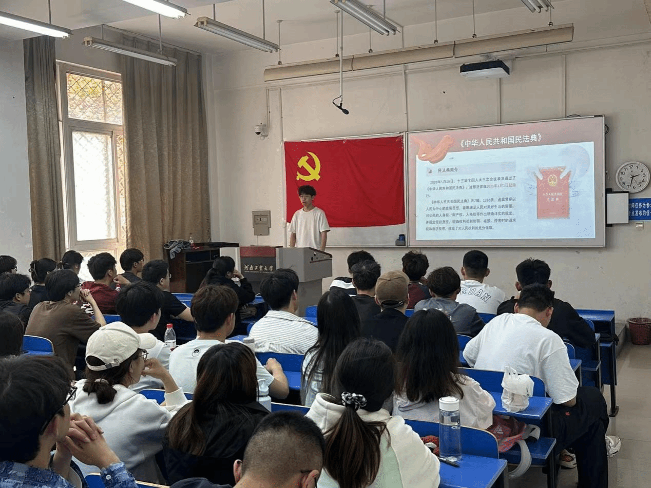 学生会团委副书记魏铼向同学们着重解读了《中华人民共和国民法典》,并通过案例分析,使同学们深刻认识到该法律在社会生活中的重要性。