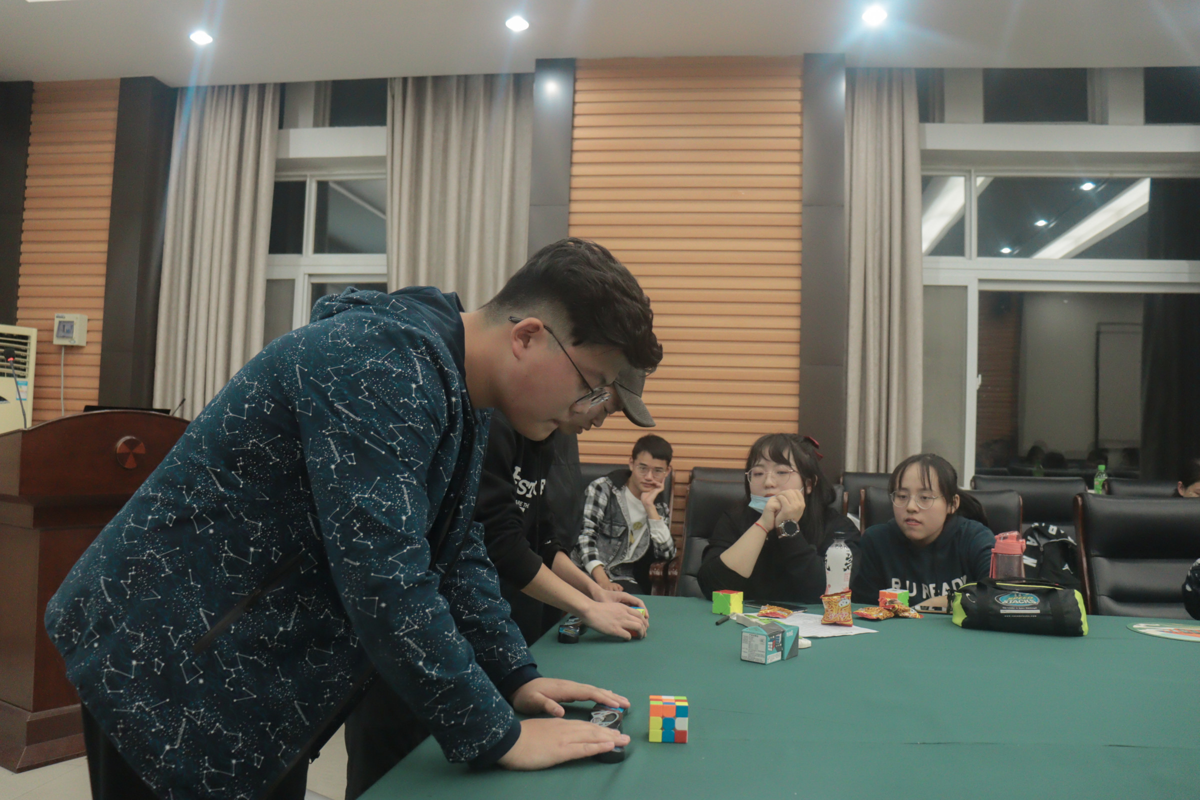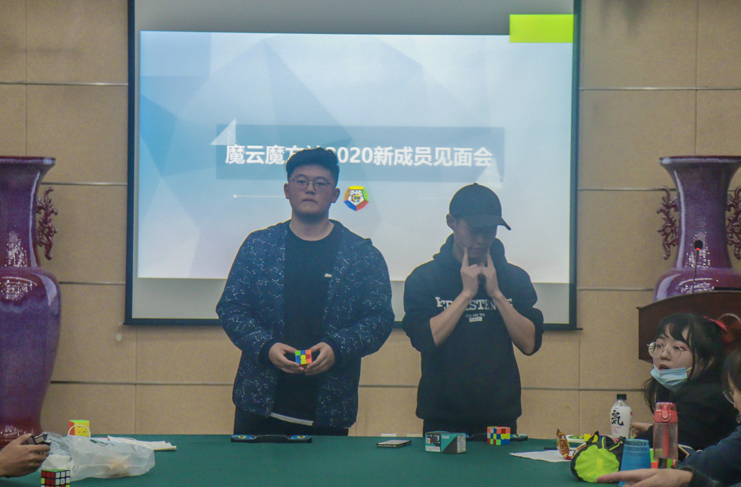 面对刚加入我们魔云魔方社2020届的新成员,学长学姐们感到十分欣慰和激动。社长给各位同学们介绍了社团的主要情况,并一起观看了有关魔方介绍的视频,新成员对魔方这一运动有了更为浓厚的兴趣,也被视频中各路大神复原魔方的方式所震撼。随后,社团安排了魔方竞速表演赛,两位同学先后在十秒左右还原了三阶魔方,赢得了在场同学的阵阵掌声。最后,在紧随而来的一波抽奖中,魔云魔方社的新成员见面会落下帷幕,相信在不久的将来,魔方一定会为他们即将开始的大学生活添加更多的精彩。
