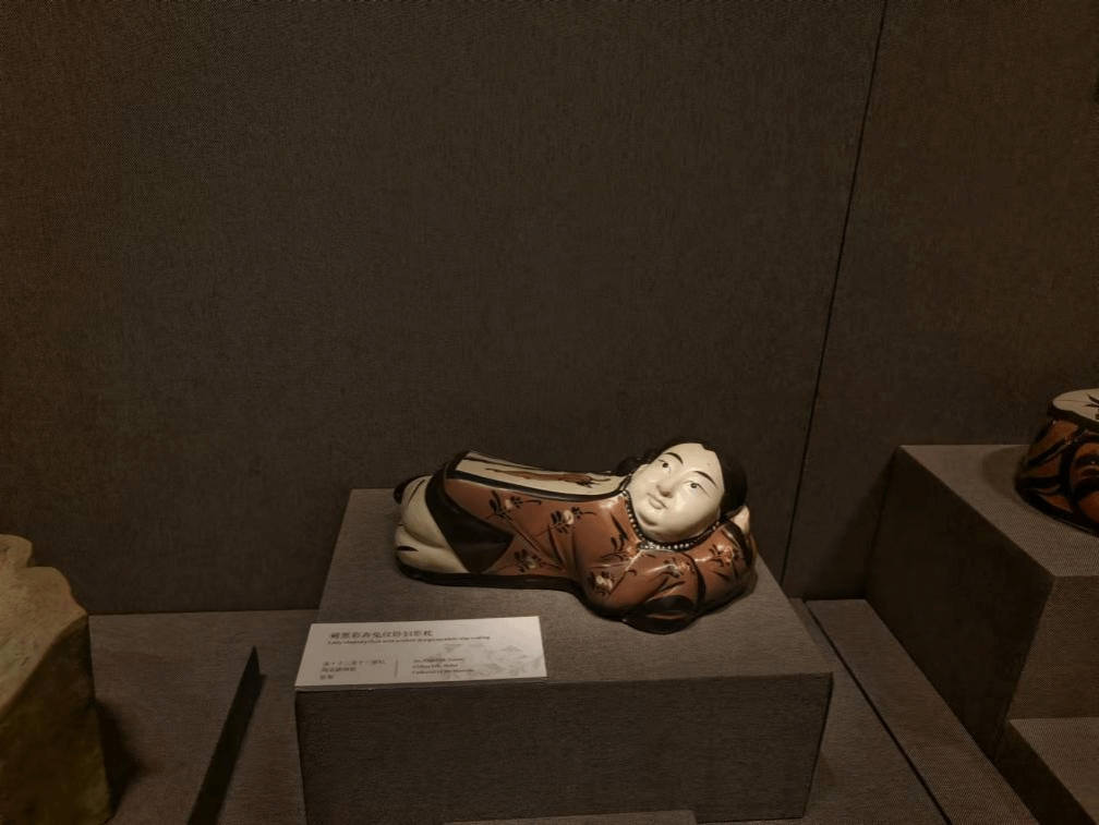 图二 褐黑彩奔兔纹卧妇形枕