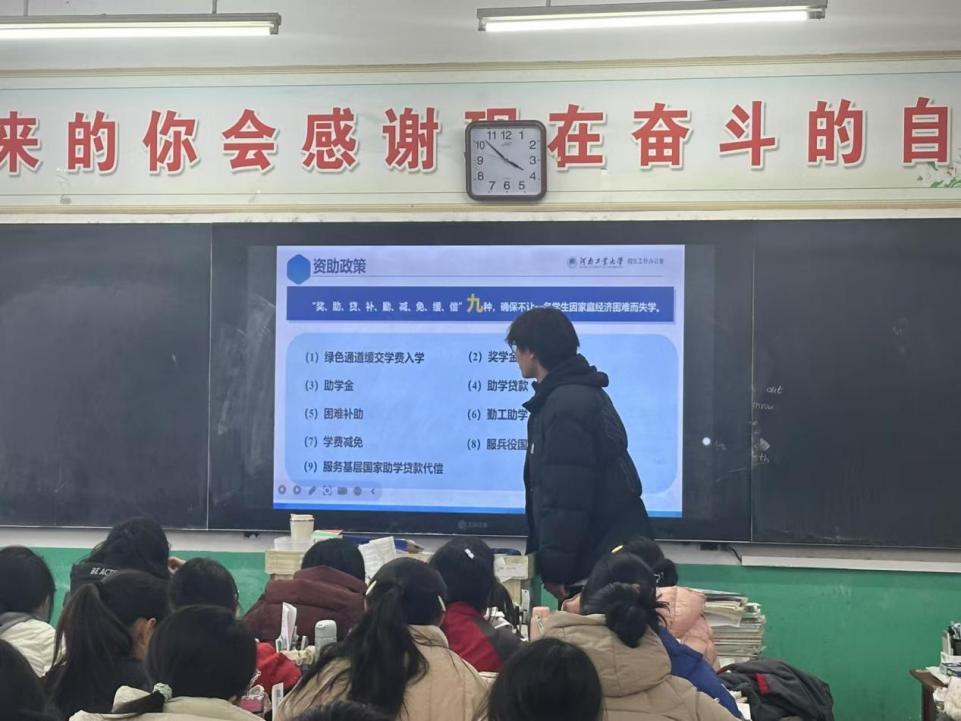在讲解环节,团队成员结合自身经历,分享了我校的奖助学政策,同时,让二高学子们深刻的体会到学校对每个学生的关心,而这些政策不仅体现了学校对学生的关怀,也激励着同学们努力学习、积极进取,全面提升综合素质,为未来发展奠定坚实基础。