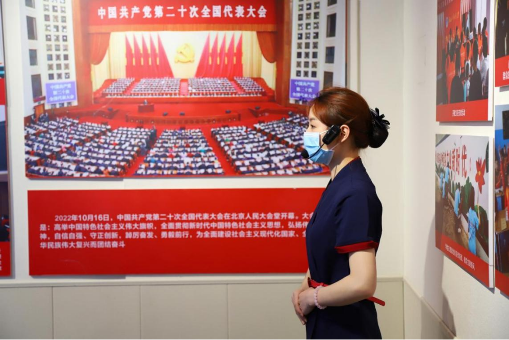图5 解说员讲述习近平新时代中国特色社会主义建设的伟大成就