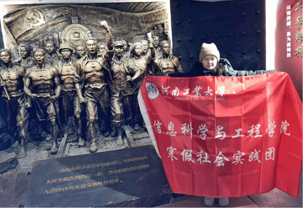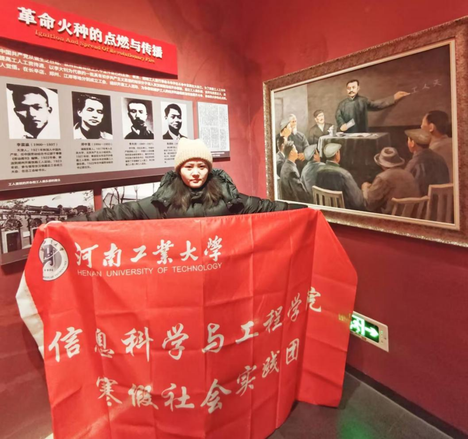 为深入探寻二七故事与二七精神,社会实践队员们怀着崇敬的心情对二七纪念堂“铁路修建”、“星星之火”、“革命烈焰”、“永恒丰碑”、“精神指引”、“传承弘扬”、“红色地标”、“城市记忆”和“百年辉煌”这九个部分进行了详细的参观。在参观过程中,团队成员在二七纪念堂内沿着展览区缓缓前行,仔细观看每一处史料,认真阅读革命先烈的光辉事迹,深刻了解了“二七大罢工”的起因、经过以及深远影响。在参观完二七纪念堂后,团队成员们对二七故事与二七精神进行了深刻的讨论,感受到了工人团结一心、不屈不挠、敢于抗争的革命精神,被工人们的强大力量所感染,也对郑州这座城市有了新的认识。