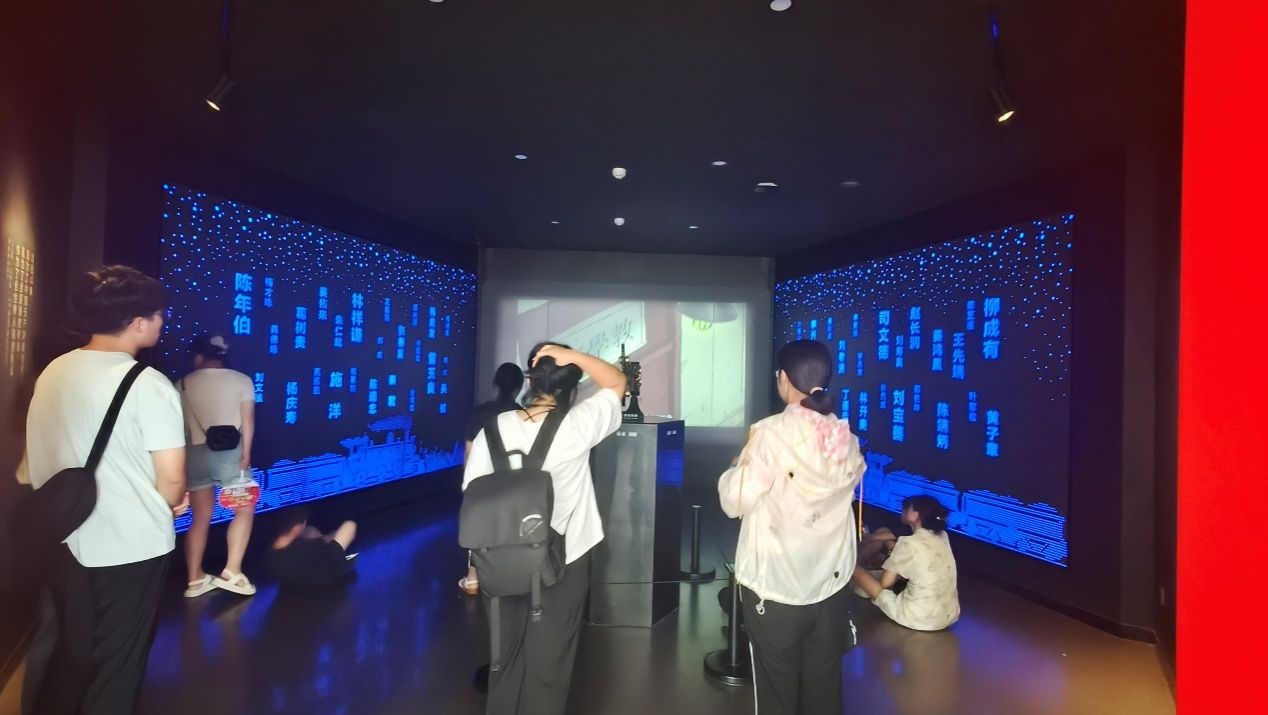 行至三层“觉醒”展厅,一台老式放映机映入眼帘,正放映着京汉铁路工人运动的纪录片。团队成员聆听二七惨案始末:1923年2月7日,吴佩孚军队镇压罢工工人,52人殉难。惨烈史实深深刺痛着每一位队员的心,却也让大家对工人运动的意义有了更深切的理解。