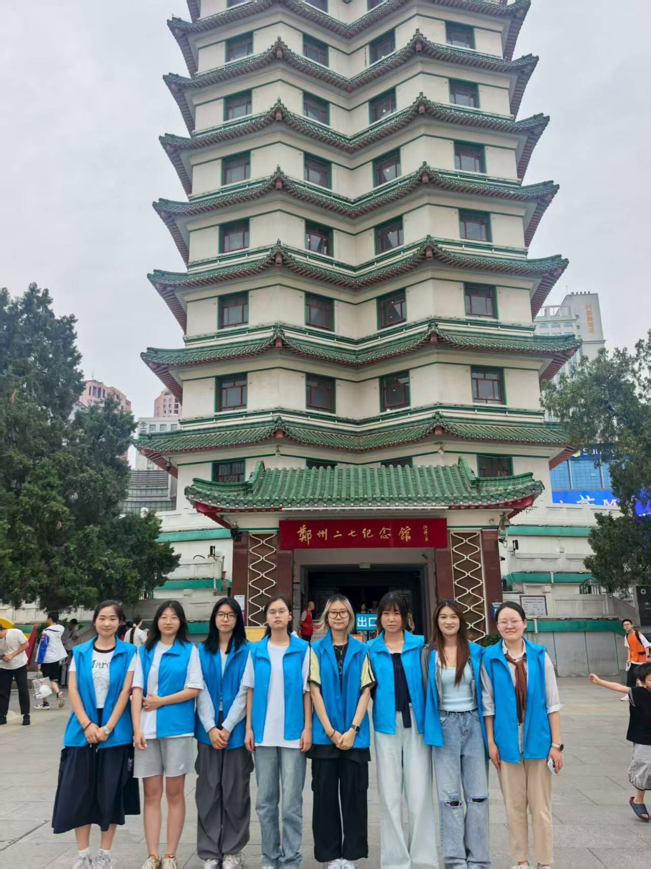 “红色领航 向阳筑梦”社会实践团队前往郑州市二七纪念塔,开展以“追溯红色记忆,传承革命精神”为主题的暑期实践活动。此次活动旨在通过实地学习与志愿行动,让队员们深刻感悟革命历史,将红色精神融入青春成长,强化新时代青年的使命担当。