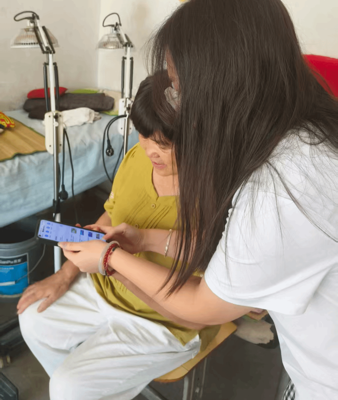 图四 队员在教老人使用智能手机