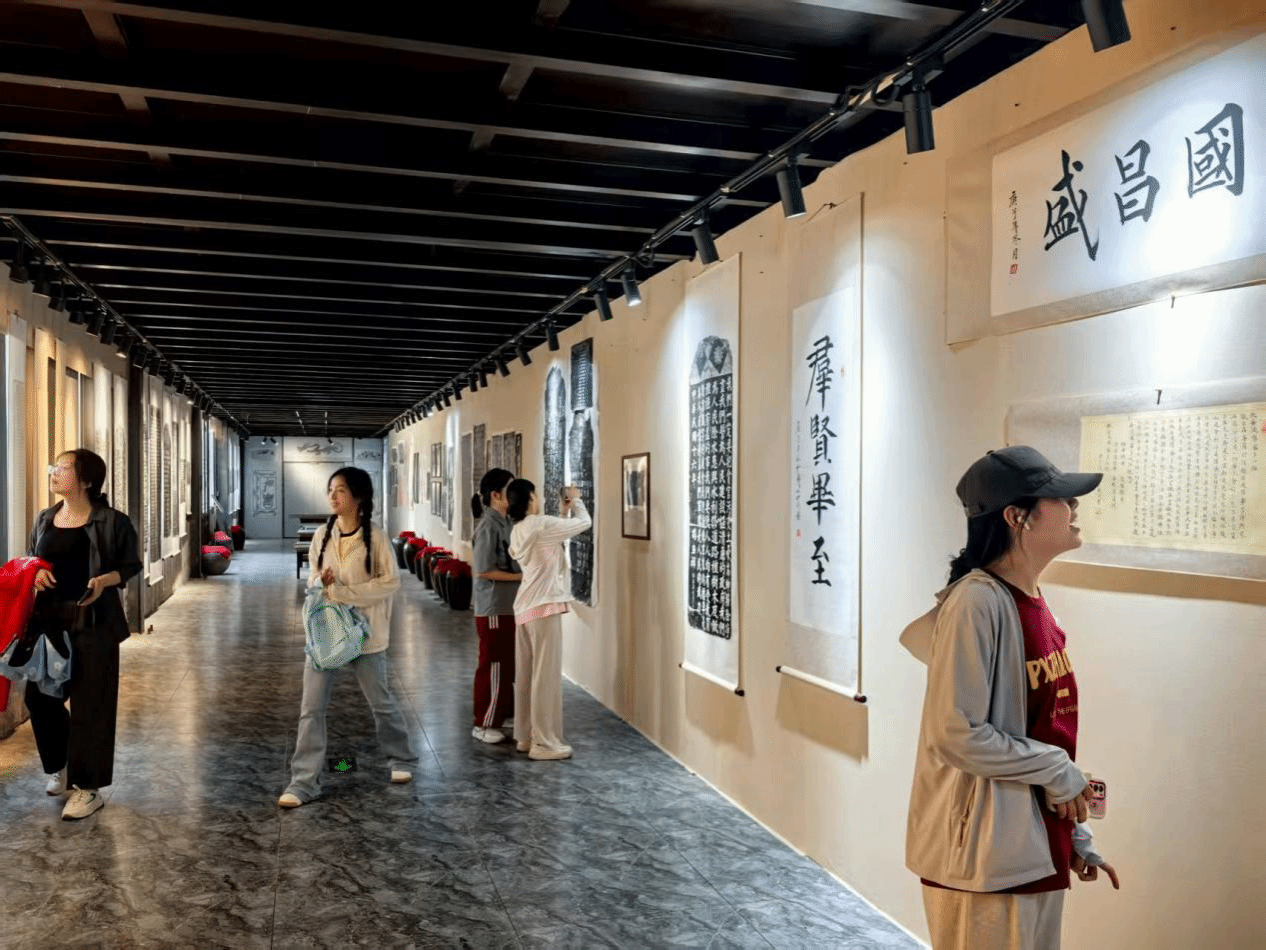 天祥博物馆设有两个展厅,一个展厅展示着家族自汉代至民国收藏的陶器、瓷器、拓片、木构部件等文物,见证着岁月流转与文化积淀;另一个是任七艺术馆,用于展示任七先生的字画,团队成员参观时,自行开灯欣赏后又细心将灯关上。