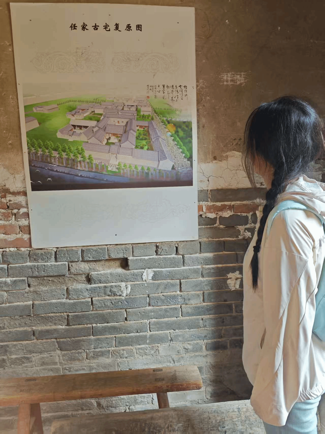 进入古宅门口,右侧的遗址处,青灰砖墙累积矗立,门前一棵绿得发亮的小树生机盎然,与古老的建筑形成鲜明对比,正如 “沉舟侧畔千帆过,病树前头万木春” 所蕴含的新旧交替之意。沿着泥路向前,拐角处的招待厅,仅需签字并登记身份证和电话号码即可入院游览。任老(看起来七十来岁,满头白发,但身体依旧硬朗)坐在桌后,笑盈盈地招呼着每一位游客,还热情地为团队拍摄了集体合照,直至成员们离开,他忙碌的身影都未曾停下。