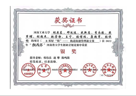 图20 通信工程专业学生在“挑战杯”河南省大学生创业计划竞赛中荣获银奖